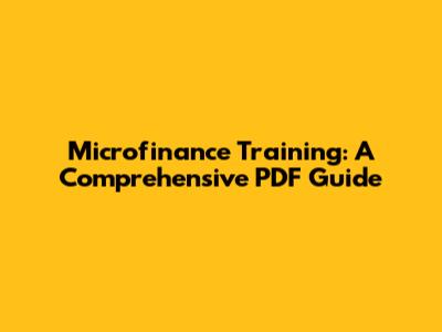 Microfinance Training: A Comprehensive PDF Guide