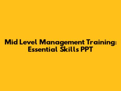 Mid Level Management Training: Essential Skills PPT