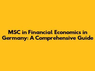 MSC In Financial Economics In Germany: A Comprehensive Guide