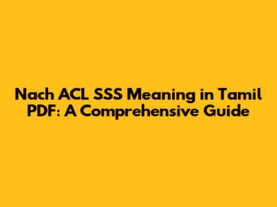 Nach ACL SSS Meaning In Tamil PDF: A Comprehensive Guide