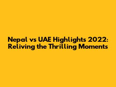 Hey guys! Let's dive into some unforgettable cricket action! In this article, we're going to relive the most exciting and nail-biting moments from the Nepal vs. UAE clashes in 2022. Buckle up, because it was a year packed with incredible performances, stunning upsets, and moments that had us all on the edge of our seats. Whether you're a die-hard fan or just getting into the sport, these highlights are sure to get your adrenaline pumping!
