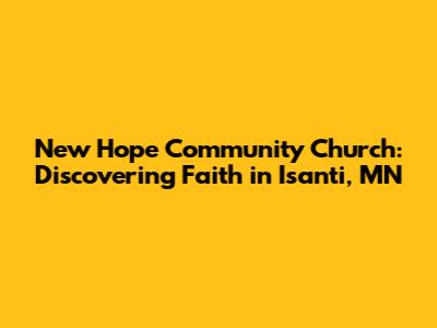 Hey everyone! Ever find yourself searching for a place to connect, grow, and maybe even find a little hope? Well, if you're in the Isanti, Minnesota area, you might just want to check out New Hope Community Church! I'm gonna break down everything you need to know about this awesome church, from its vibe to its community involvement. Think of this as your friendly guide to everything New Hope. So, let's dive in, shall we?