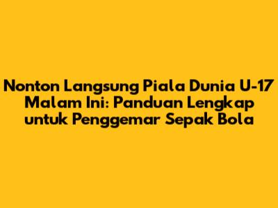 Hai guys! Siapa di sini yang gak sabar buat nonton Piala Dunia U-17 malam ini? Pasti banyak banget kan! Nah, buat kalian yang pengen nonton langsung pertandingannya, gue udah siapin panduan lengkap biar kalian gak ketinggalan satu pun momen seru. Mulai dari jadwal, cara nonton live, sampai info-info menarik seputar Piala Dunia U-17, semua ada di sini! Jadi, siap-siap ya, karena kita bakal seru-seruan bareng!