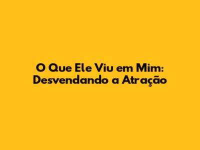O Que Ele Viu Em Mim: Desvendando A Atração