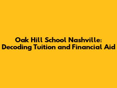 Hey everyone! If you're looking into Oak Hill School in Nashville, you're probably wondering about one of the most important things: the tuition. Let's dive into the specifics of Oak Hill School's tuition and explore options for financial aid. This article will break down everything you need to know, so you can make an informed decision for your family. Understanding the financial commitment is crucial, but it's also important to remember that the quality of education and the opportunities available at Oak Hill can be well worth the investment. We'll explore the current tuition rates, any additional fees you might encounter, and the financial assistance programs they offer. Let's get started!