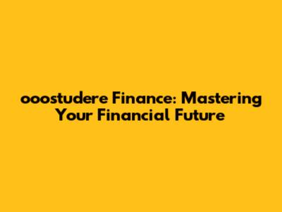 Ooostudere Finance: Mastering Your Financial Future