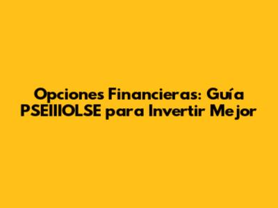 Opciones Financieras: Guía PSEIIIOLSE Para Invertir Mejor