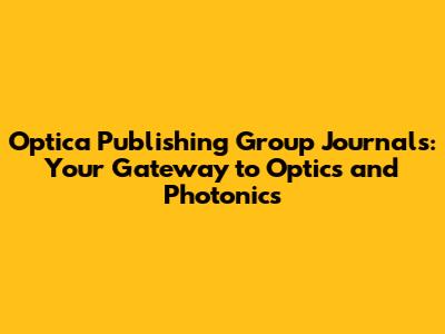 Optica Publishing Group Journals: A Comprehensive Guide