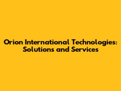 Orion International Technologies: Solutions And Services