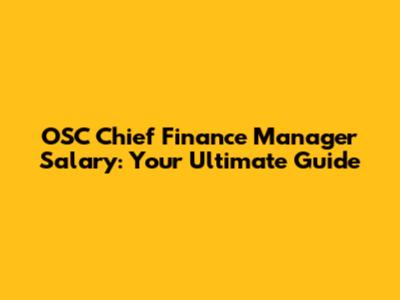 OSC Chief Finance Manager Salary: What You Need To Know