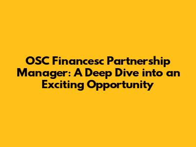 OSC Financesc: Exciting Partnership Manager Opportunity!