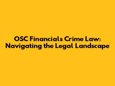 OSC Financials Crime Law: Navigating The Legal Landscape