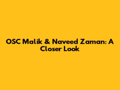 OSC Malik & Naveed Zaman: A Closer Look