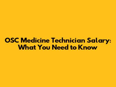 OSC Medicine Technician Salary: What You Need To Know