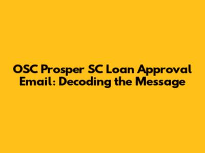 OSC Prosper SC Loan Approval Email: What You Need To Know