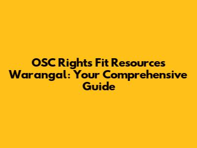 OSC Rights Fit Resources In Warangal: Your Guide