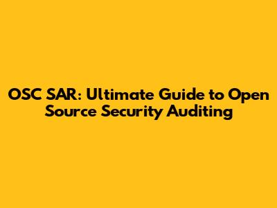 OSC SAR: Ultimate Guide To Open Source Security Auditing