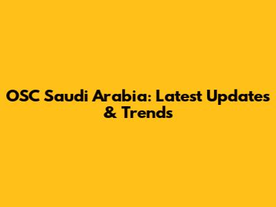 OSC Saudi Arabia: Latest Updates & Trends