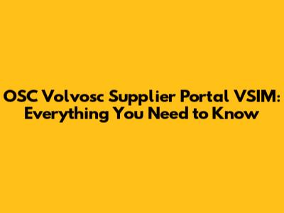 OSC Volvosc Supplier Portal VSIM: Everything You Need To Know