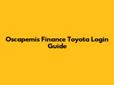 Oscapemis Finance Toyota Login Guide