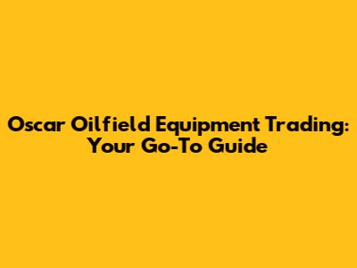 Oscar Oilfield Equipment Trading: Your Go-To Guide