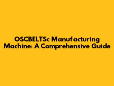 OSCBELTSc Manufacturing Machine: A Comprehensive Guide