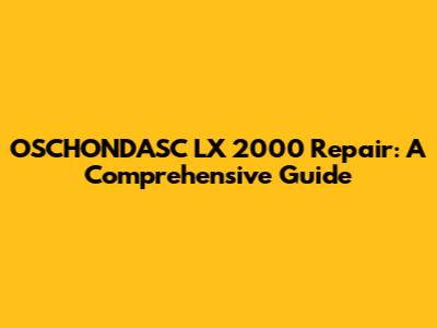 OSCHONDASC LX 2000 Repair: A Comprehensive Guide