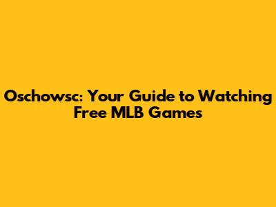 Oschowsc: Your Guide To Watching Free MLB Games