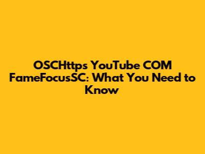 OSCHttps YouTube COM FameFocusSC: What You Need To Know