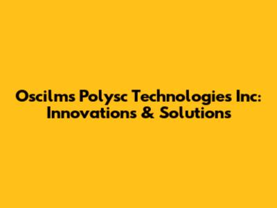 Oscilms Polysc Technologies Inc: Innovations & Solutions