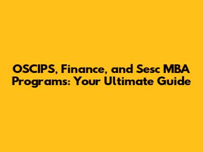 OSCIPS, Finance, And Sesc MBA Programs: Your Ultimate Guide