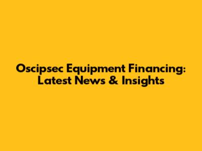 Oscipsec Equipment Financing: Latest News & Insights