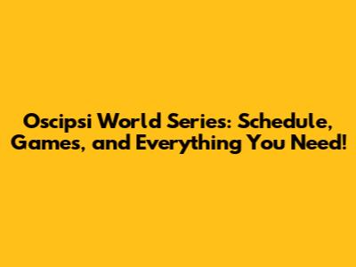 Oscipsi World Series: Schedule, Games, And Everything You Need!