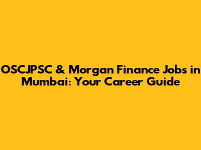 OSCJPSC & Morgan Finance Jobs In Mumbai: Your Career Guide