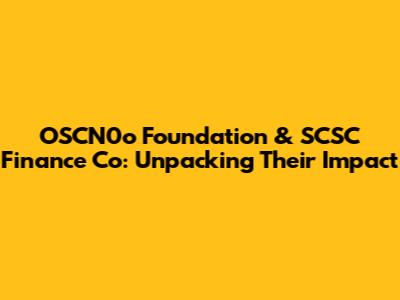 OSCN0o Foundation & SCSC Finance Co: Unpacking Their Impact