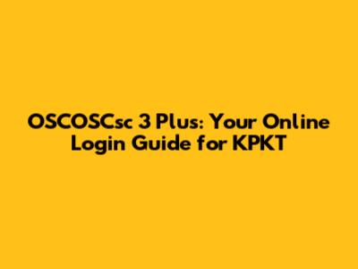 OSCOSCsc 3 Plus: Online Login Guide For KPKT