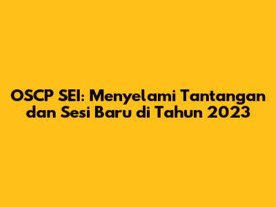 OSCP SEI: Tantangan Dan Sesi Baru Di Tahun 2023
