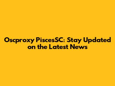 Oscproxy PiscesSC: Latest News And Developments