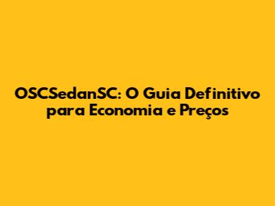 OSCSedanSC: O Guia Definitivo Para Economia E Preços