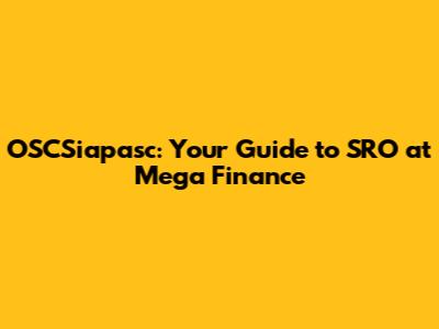 OSCSiapasc: Your Guide To SRO At Mega Finance