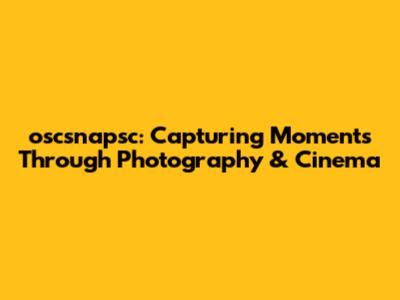 Oscsnapsc: Capturing Moments Through Photography & Cinema
