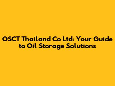 OSCT Thailand: Your Guide To Oil Storage Solutions