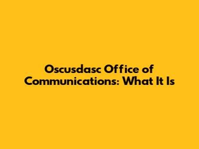 Oscusdasc Office Of Communications: What It Is