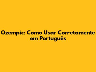 Ozempic: Como Usar Corretamente Em Português