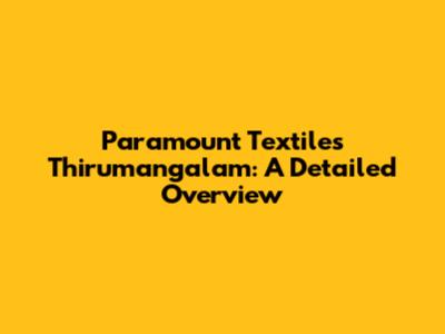 Paramount Textiles Thirumangalam: A Detailed Overview