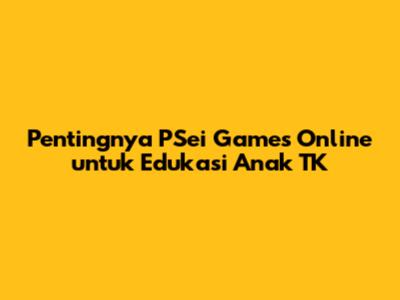 Apa Itu PSei Games Online dan Mengapa Cocok untuk Anak TK?