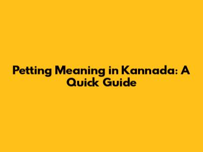 Petting Meaning In Kannada: A Quick Guide