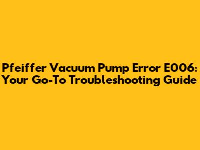 Pfeiffer Vacuum Pump Error E006: Troubleshooting Guide