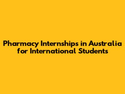 Pharmacy Internships In Australia For International Students