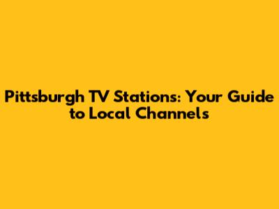 Staying Up-to-Date with Pittsburgh TV